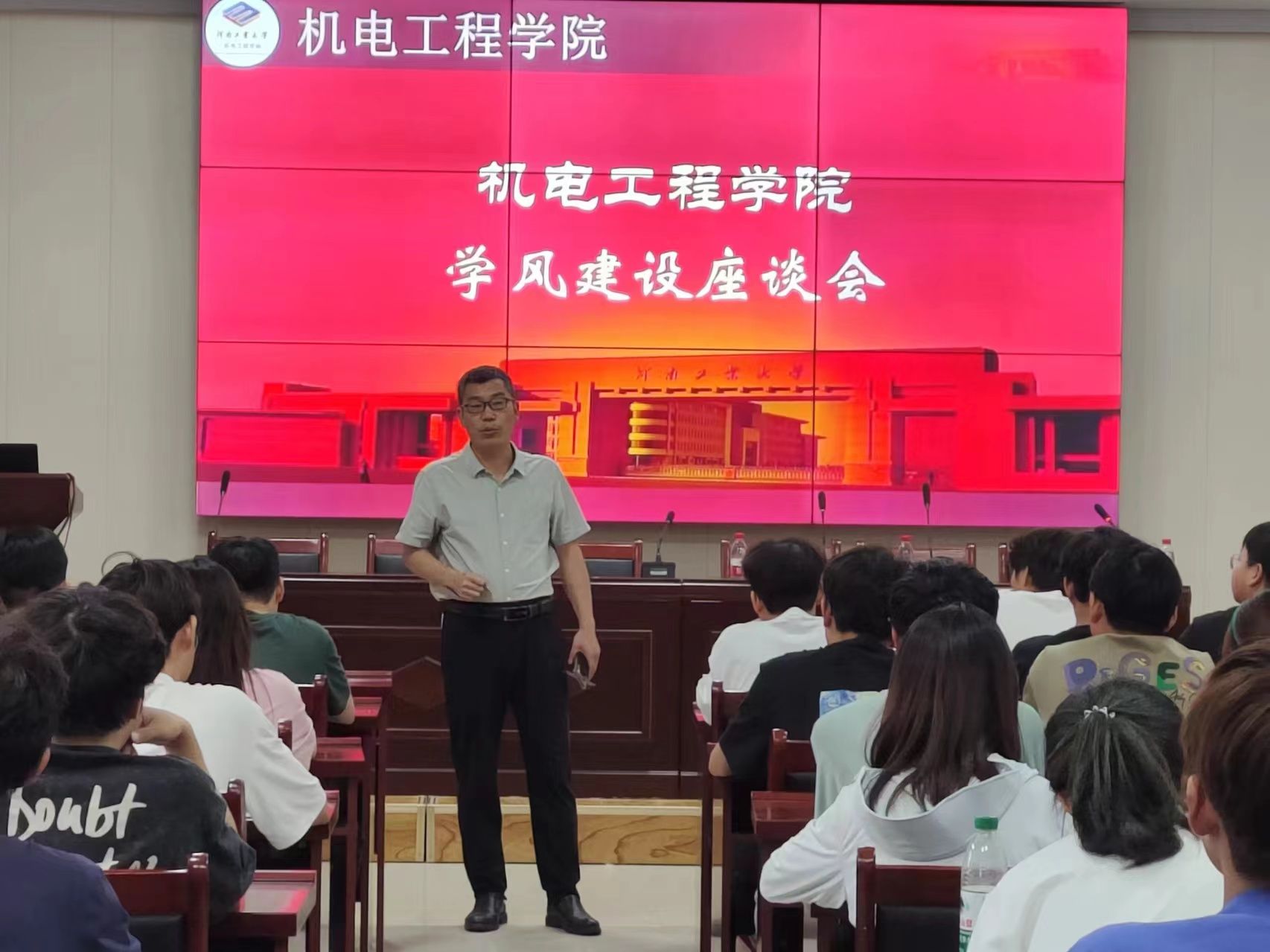 刘伟杰结合案例向同学们讲解了当前学院的考研和就业情况,鼓励同学们要对自己的未来发展尽早做规划,要珍惜来之不易的学习机会,利用学校与学院的平台优势,努力提升自身建设。他强调建设良好的学风是提高教学质量的重要保证,也是培养优秀人才的重要前提。为培养同学们形成良好的学习氛围,应从以下几点做起:明确学习目标,培养良好的学习习惯,加强自我管理,营造良好的学习氛围。