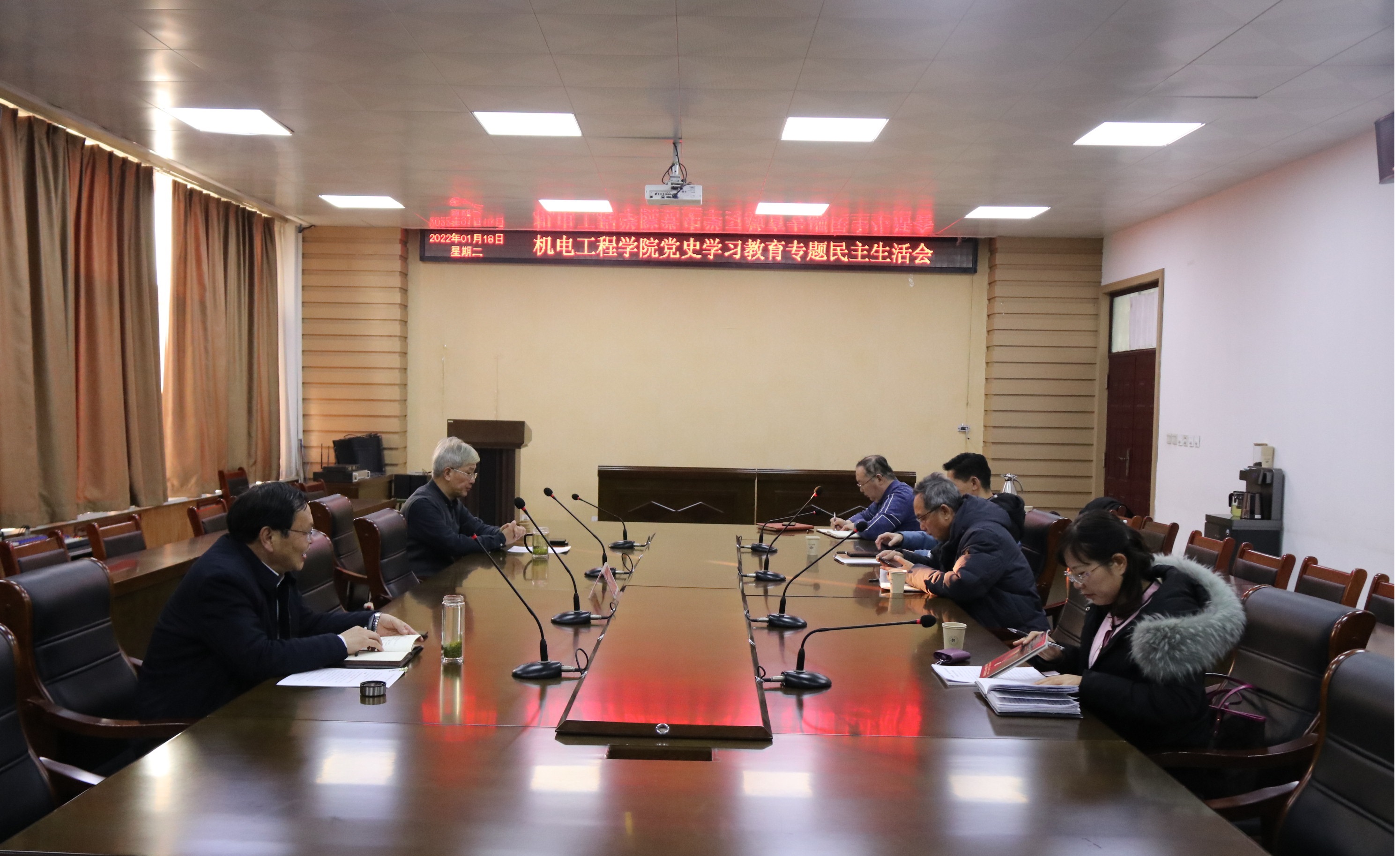 在7244召开领导班子党史学习教育专题民主生活会。副校长曹健会前具体指导并提出要求。学院领导班子全体成员参加会议,会议由党委书记谭长福主持。