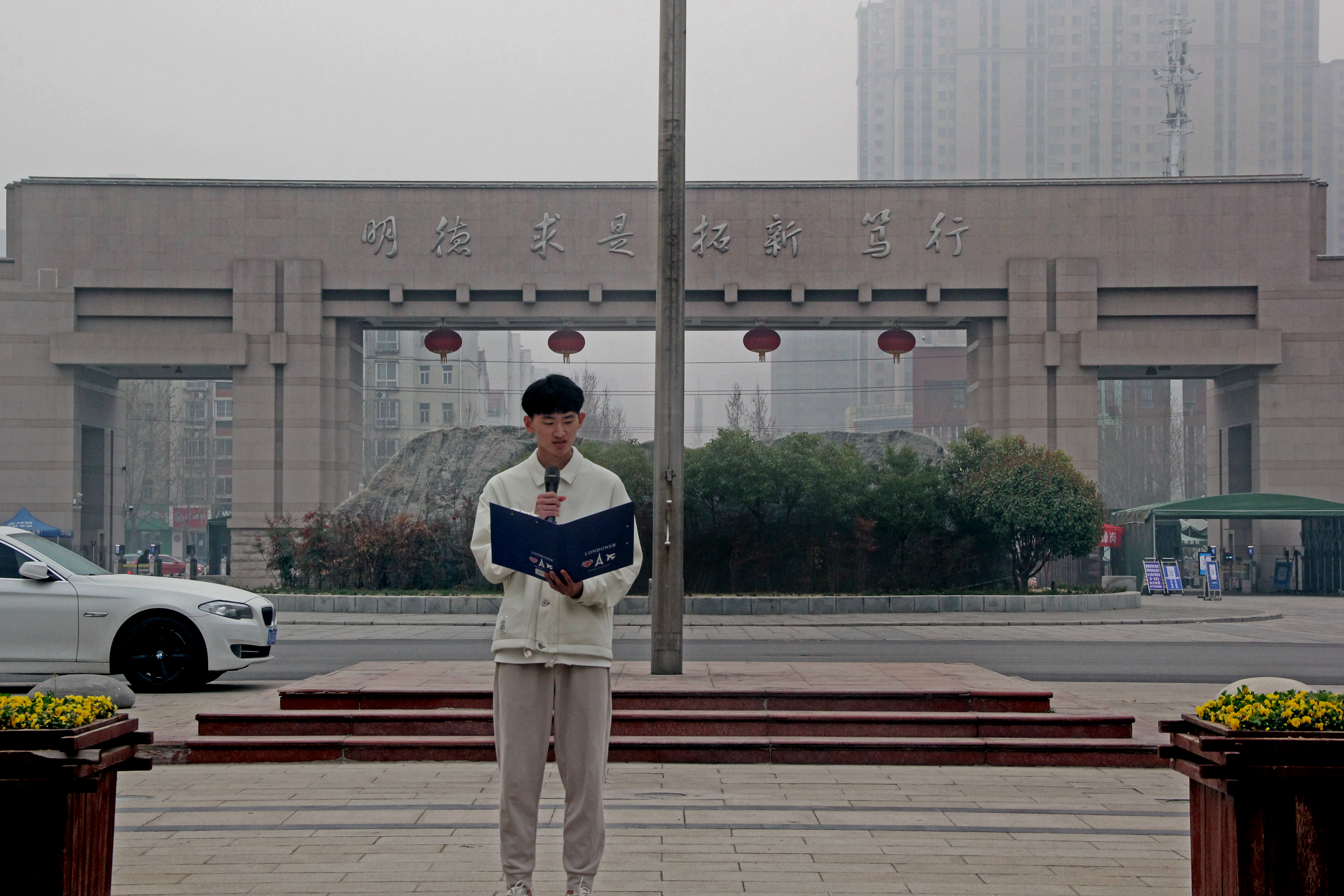 最后,智能制造专业2104班侯荣坤做了主题为“拳拳爱国心,殷殷报国情”的发言,号召同学们应当自强自立,为祖国的繁荣昌盛贡献青春的力量。