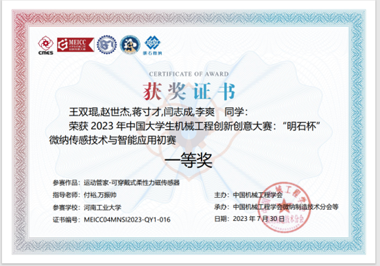 付裕等老师指导的“运动管家--可穿戴式柔性力磁传感器”获得研究生组一等奖,并入围全国总决赛。陈卓等老师指导的“智能未来--智能柔性氨气传感器手套”项目获得研究生组二等奖。