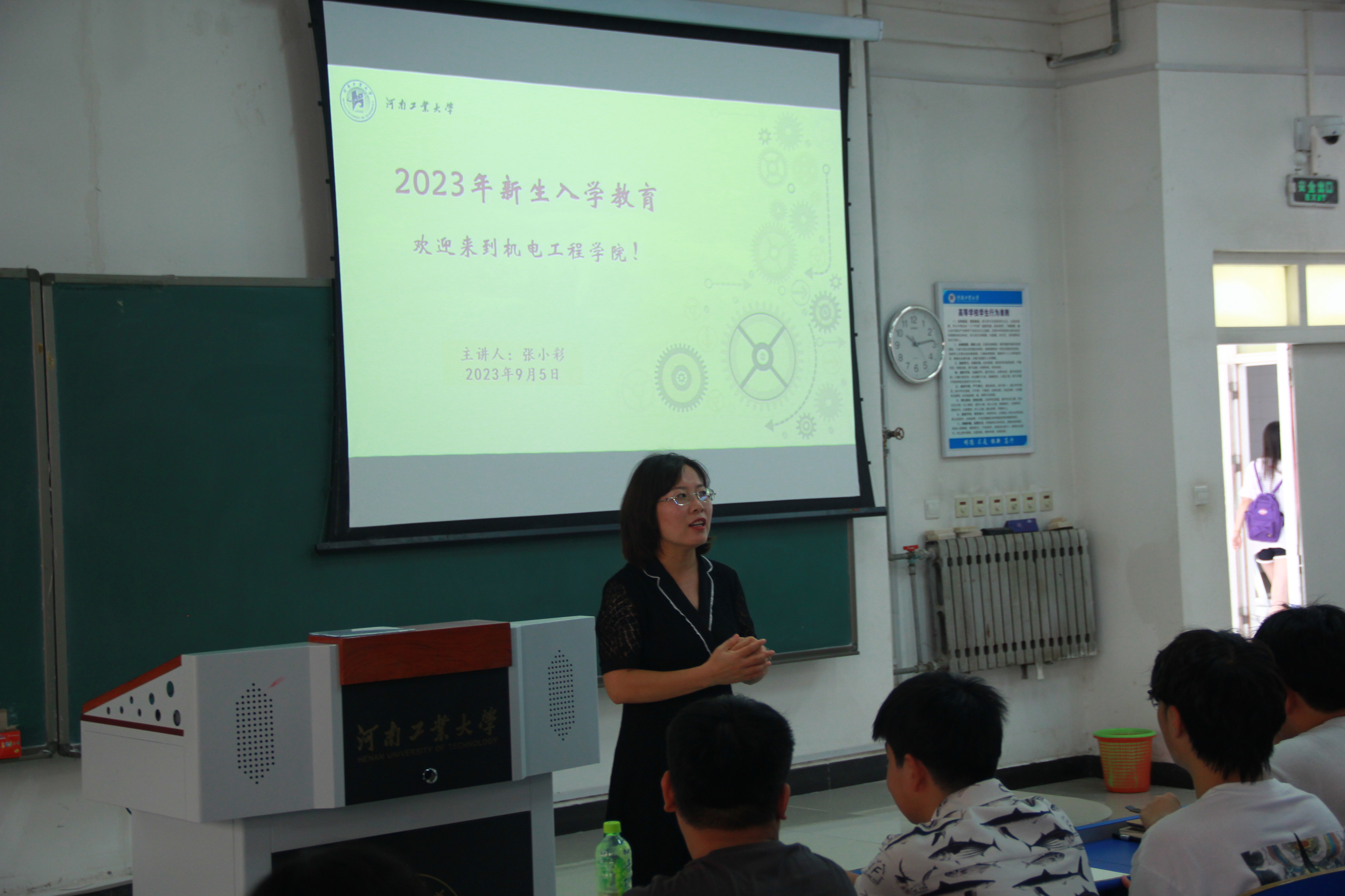 上好“开学第一课”,提升思想修养。9月3日上午,学院党委副书记张小彩及新生辅导员老师为全体新生进行了“开学第一课”教育。围绕理想信念、职业生涯规划、诚信教育、心理健康、防范宗教渗透等内容,引导同学们树立正确的世界观、人生观、价值观,确立新目标,制定新计划,畅想新未来