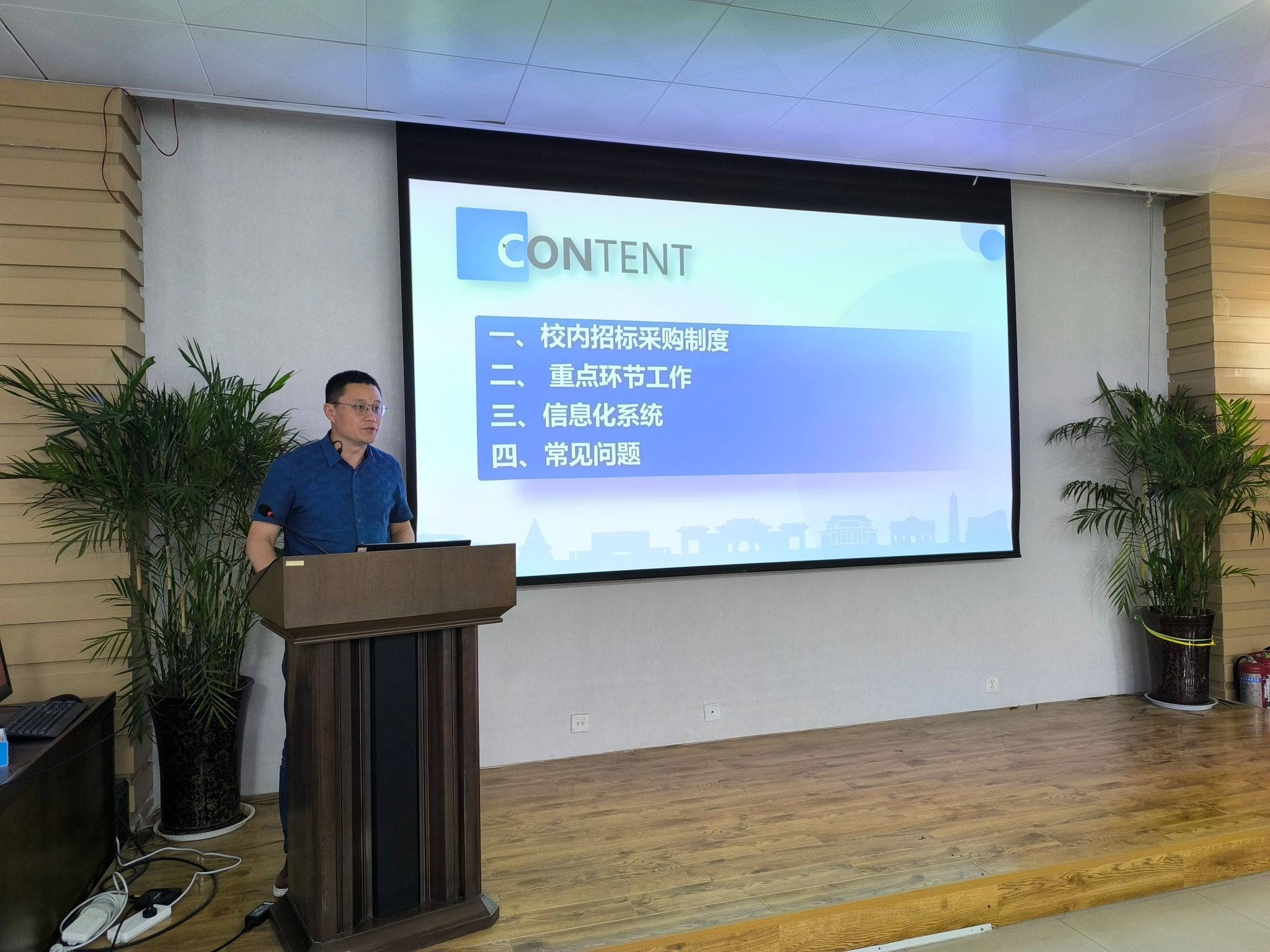 首先,邓鹏辉向大家简要介绍了我校的招投标管理工作,重点强调了招投标工作是一项政策性、专业性特别强的工作,希望大家要认真、科学、严谨地对待招投标事项,同时要多理解、多支持招标办的工作;项目建设的前期调研、论证、询价、技术要求撰写等环节对招标质量至关重要,希望项目负责人要高度重视、充分论证,以免为项目后期的招标、建设、验收等环节带来不必要的困难;招投标过程是公开、透明的,招标流程是合规、合法的,招标要求是科学、合理的,希望大家要树立正确的招标观念,坚持诚信守法、公平公正的原则,共同为项目建设保驾护航。王善文详细介绍了我校的招标采购制度。他从校内招标采购制度、重点环节工作信息化系统以及常见问题等四个方面进行了全面阐述,使与会人员对学校的招标采购流程有了更加清晰的认识,最后,参会人员围绕招标采购政策、程序、系统操作及后期工作中可能会出现的问题进行了良好互动和深入交流。