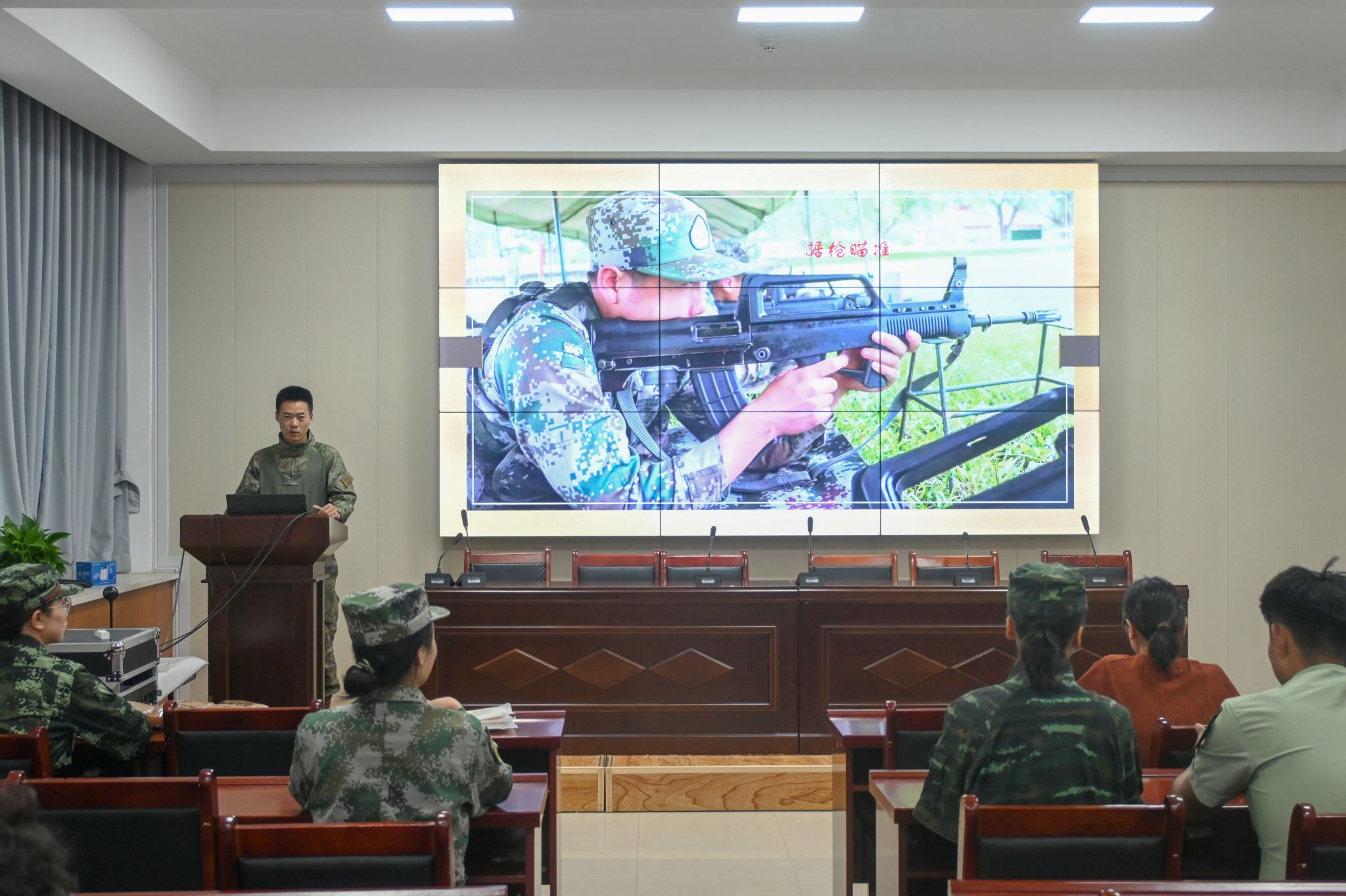 宣传团成员周军顺、杜梦可、梁法洋和田至昊就参军原因、入伍期间的日常训练、部队生活、参军的收获与成长等方面分享了各自的入伍经历,鼓励同学们投笔从戎,报效祖国,实现自身价值,同时还为大家播放了自己部队日常训练的短片,增强了同学们对军营生活的向往。李冰就参军的基本条件、服役期间政策、退役后政策福利和待遇进行了详细介绍,全方位解读了大学生应征入伍的相关政策,加深了同学们对参军政策的了解。