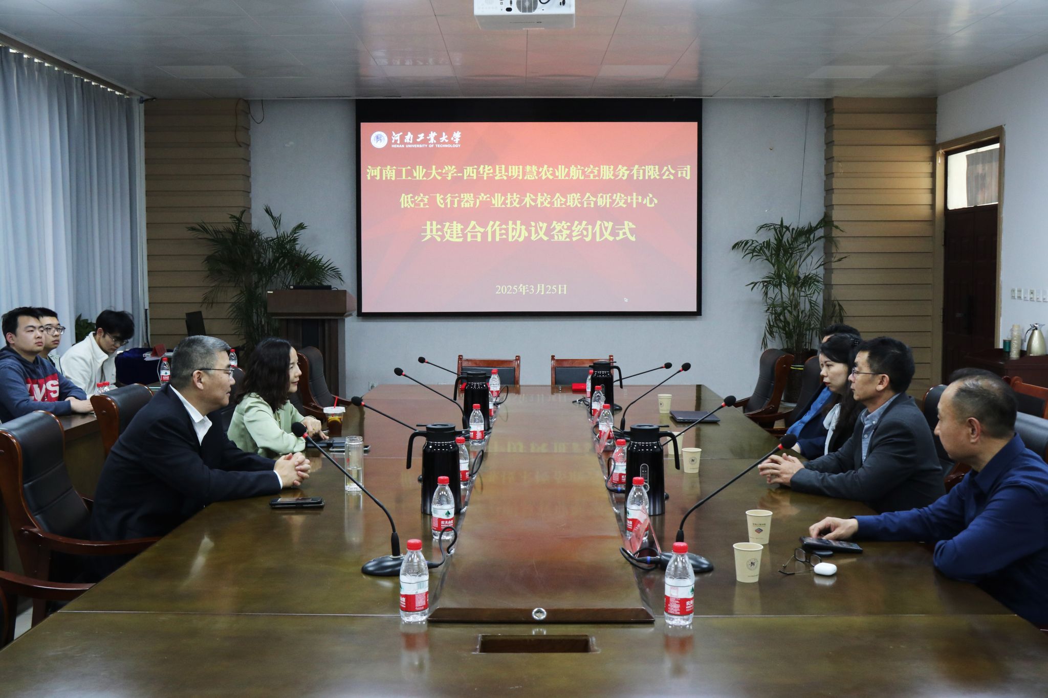 3月25日下午,学院与西华县明慧农业航空服务有限公司共建“低空飞行器产业技术校企联合研发中心”合作协议签约仪式在惟明楼7244会议室举行。院长吴兰、郑州轻工业行业协会秘书长兼韩国h漫