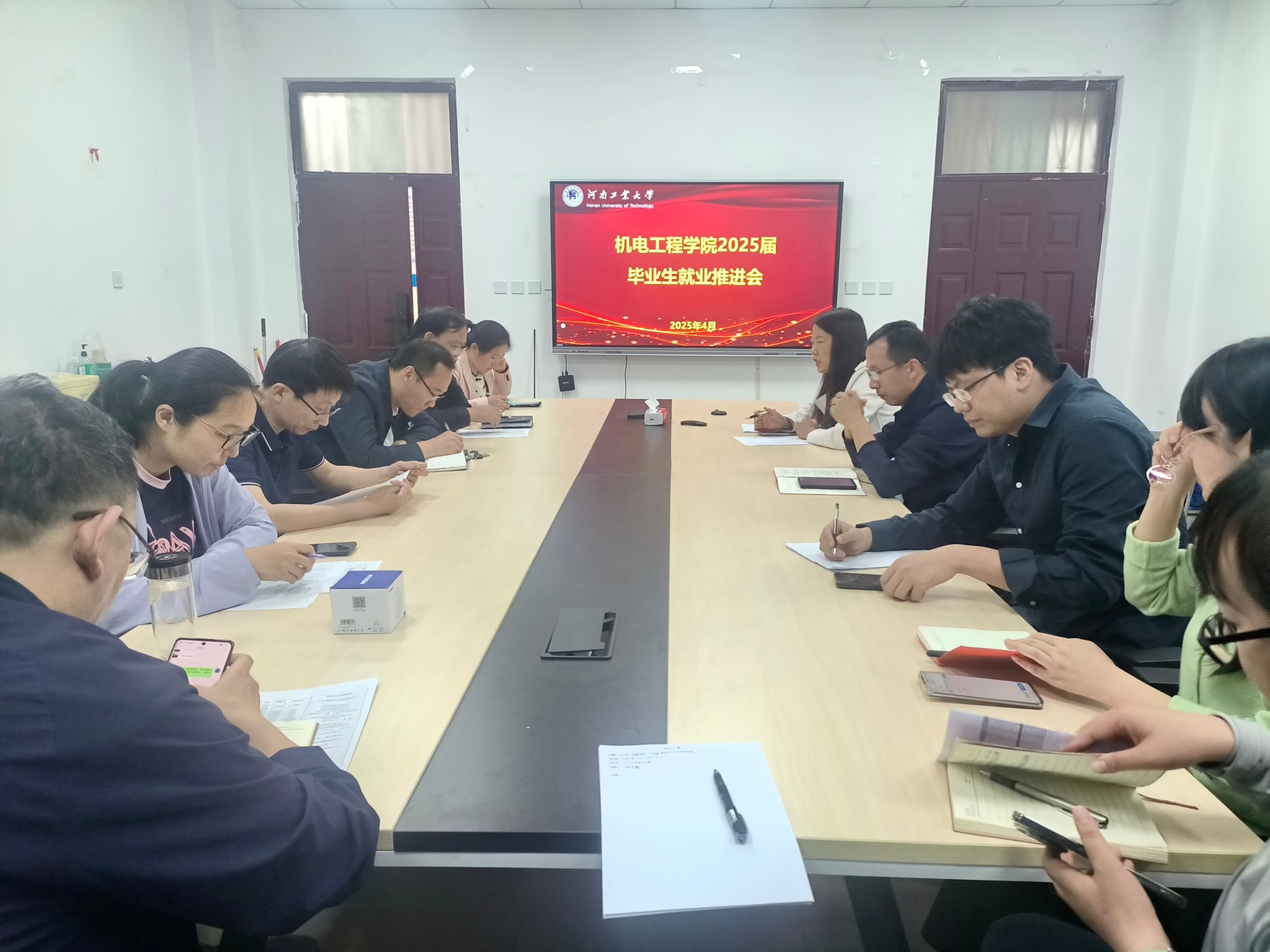 在 7123 会议室召开 2025 届毕业生就业推进会。学院党委书记魏涛、党委副书记张东霞、毕业班辅导员、班主任参加会议。