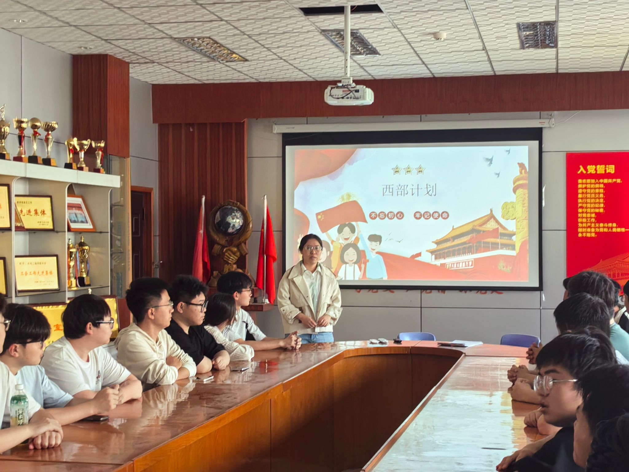 会上,杨贞贞首先详细解读了西部计划志愿者的招募条件、报名时间及方式、选拔机制及政策保障等,重点强调报名截止时间及线上通道,提醒同学们把握计划,及时行动。她指出,西部计划是国家为青年提供的成长舞台,更是新时代青年践行“到祖国最需要的地方去”使命的重要途径。