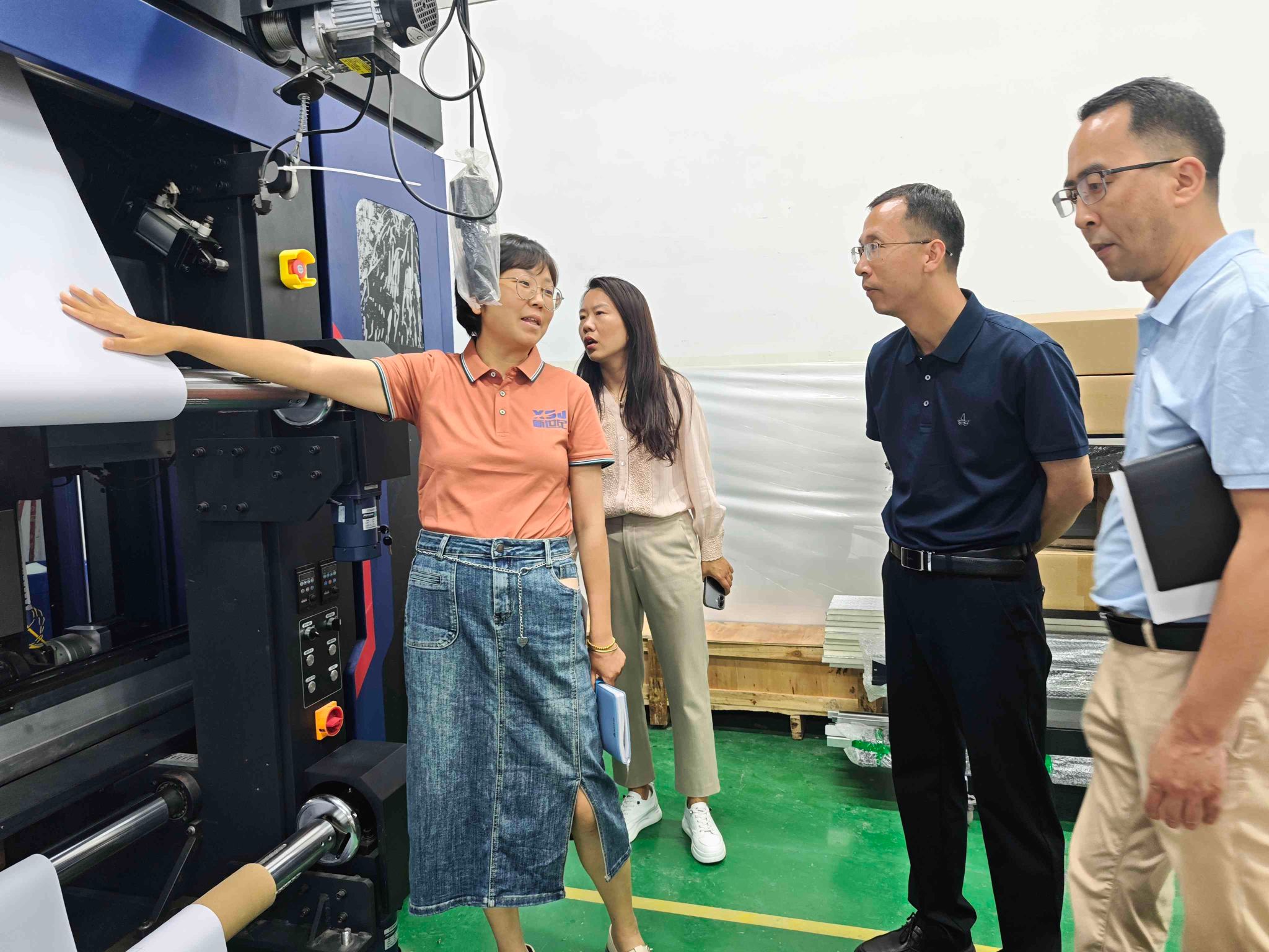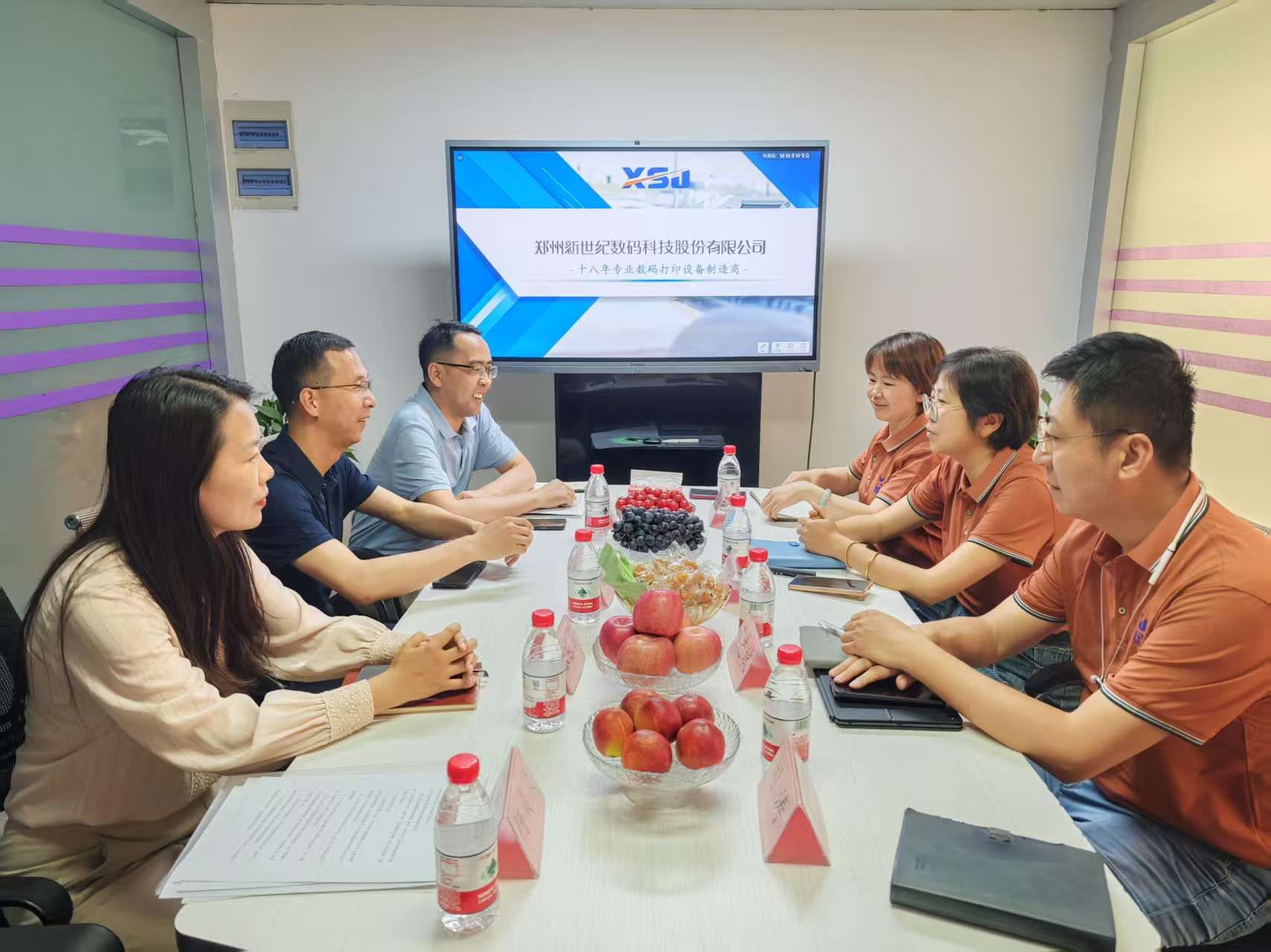 实地考察环节,魏涛等一行首先深入两家企业的生产车间,实地调研智能化生产线运作流程、核心技术研发环节及产业升级成果。在郑州新世纪数码科技股份有限公司,考察团重点了解了数码打印设备的精密制造工艺;在郑州新基业汽车电子有限公司,直观感受企业在技术创新与产业转型中的前沿实践。