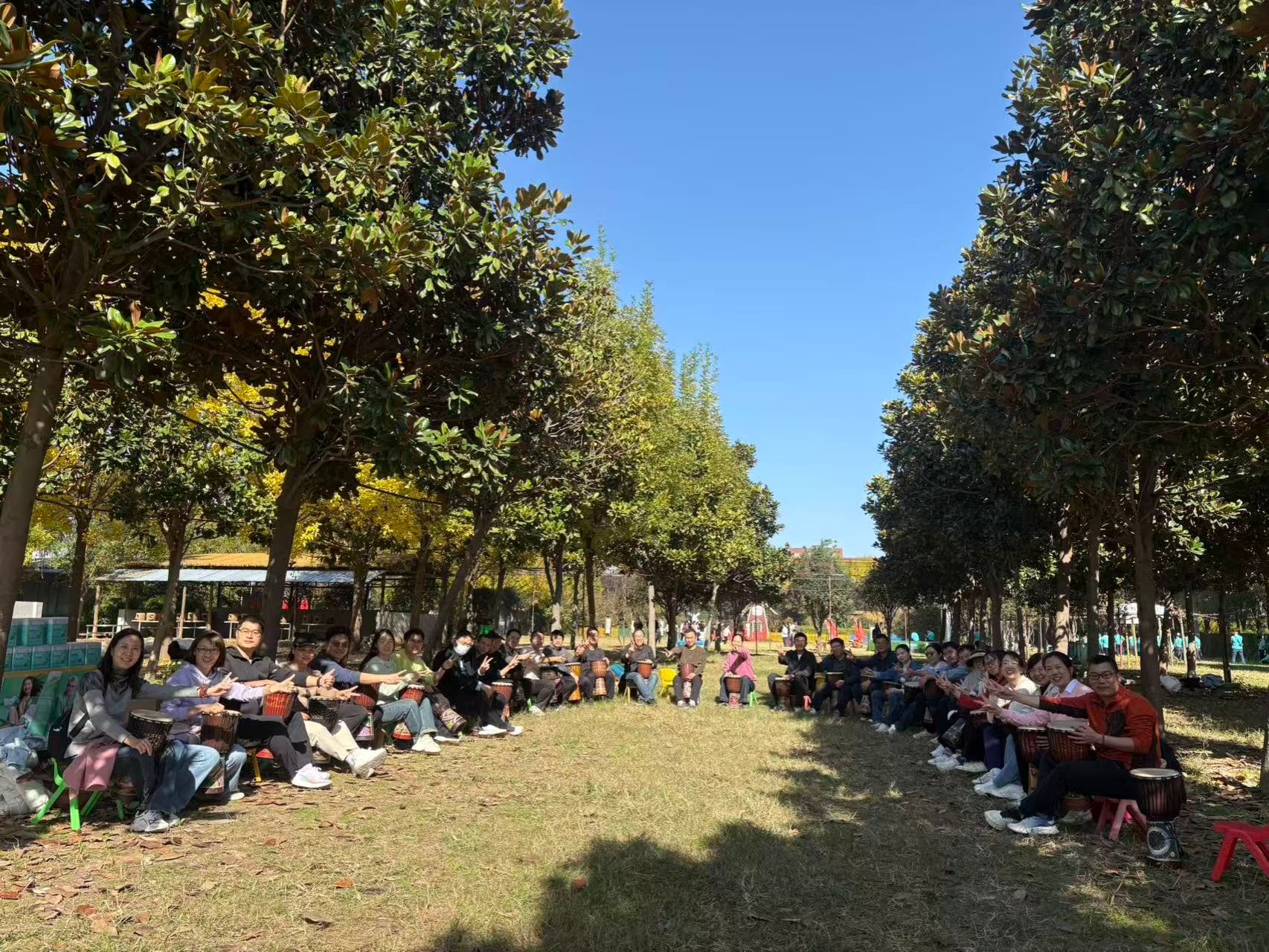 最具特色的“非洲鼓”课程,为本次活动画上了温情的句号。在教练的指导下,老师们围坐成圈,从简单的节奏练习开始,逐渐掌握基础节拍。随着音乐响起,大家跟着旋律共同击鼓,这一刻通过音乐传递快乐与温暖。