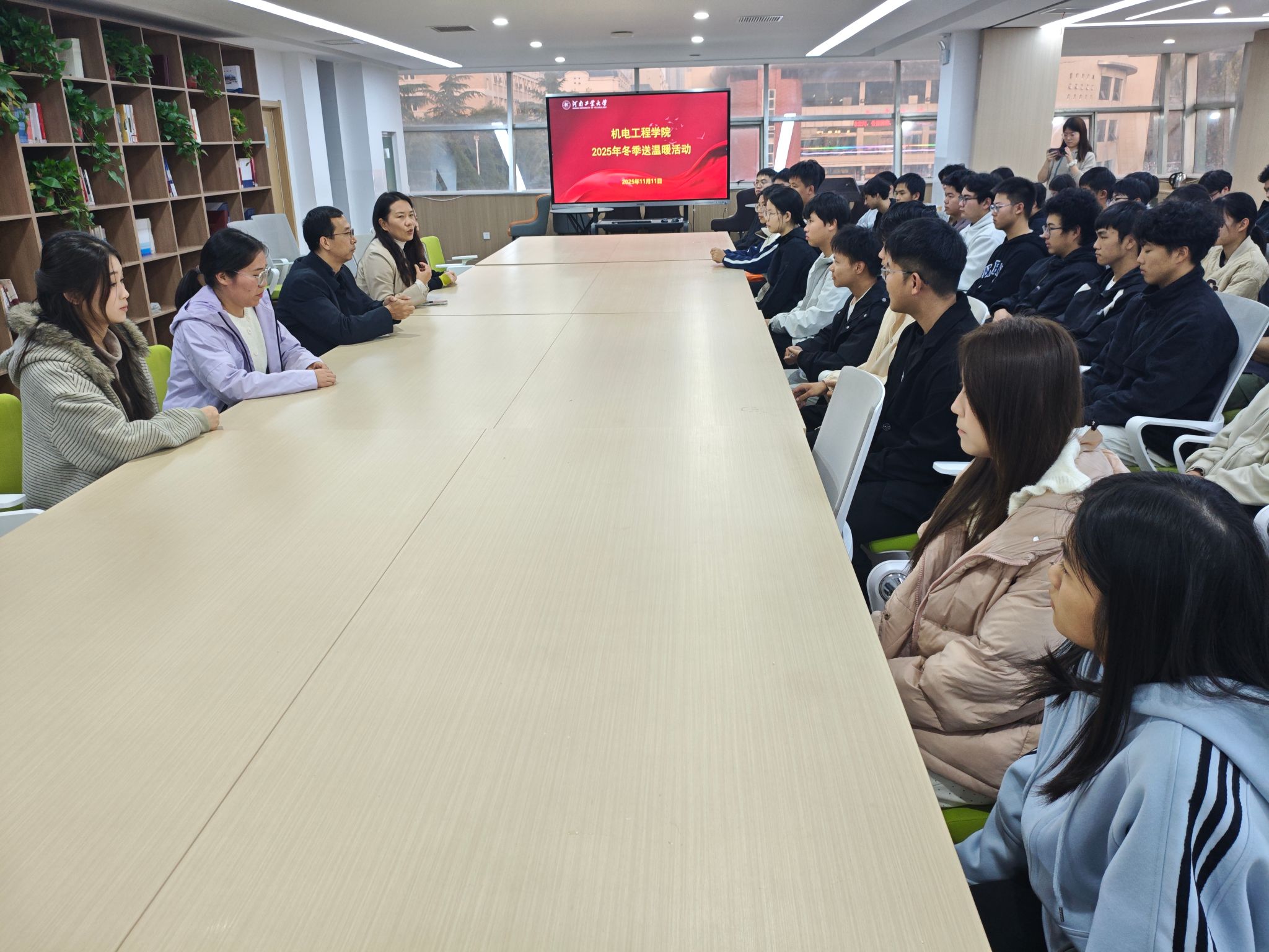 活动伊始,张东霞向在场学生致以亲切慰问和与坚定支持。她指出,学院开展冬季送温暖活动,旨在让同学们切实感受到机电大家庭的温暖。并对同学们提出三点期望:一是要直面困难的勇气,将学院的关爱转化为奋发向上的动力。二是要珍惜校园时光,专注学业成长,提升综合素质。三是要学会传递温暖,让爱心在接力中延续,照亮更多人的前行之路。
