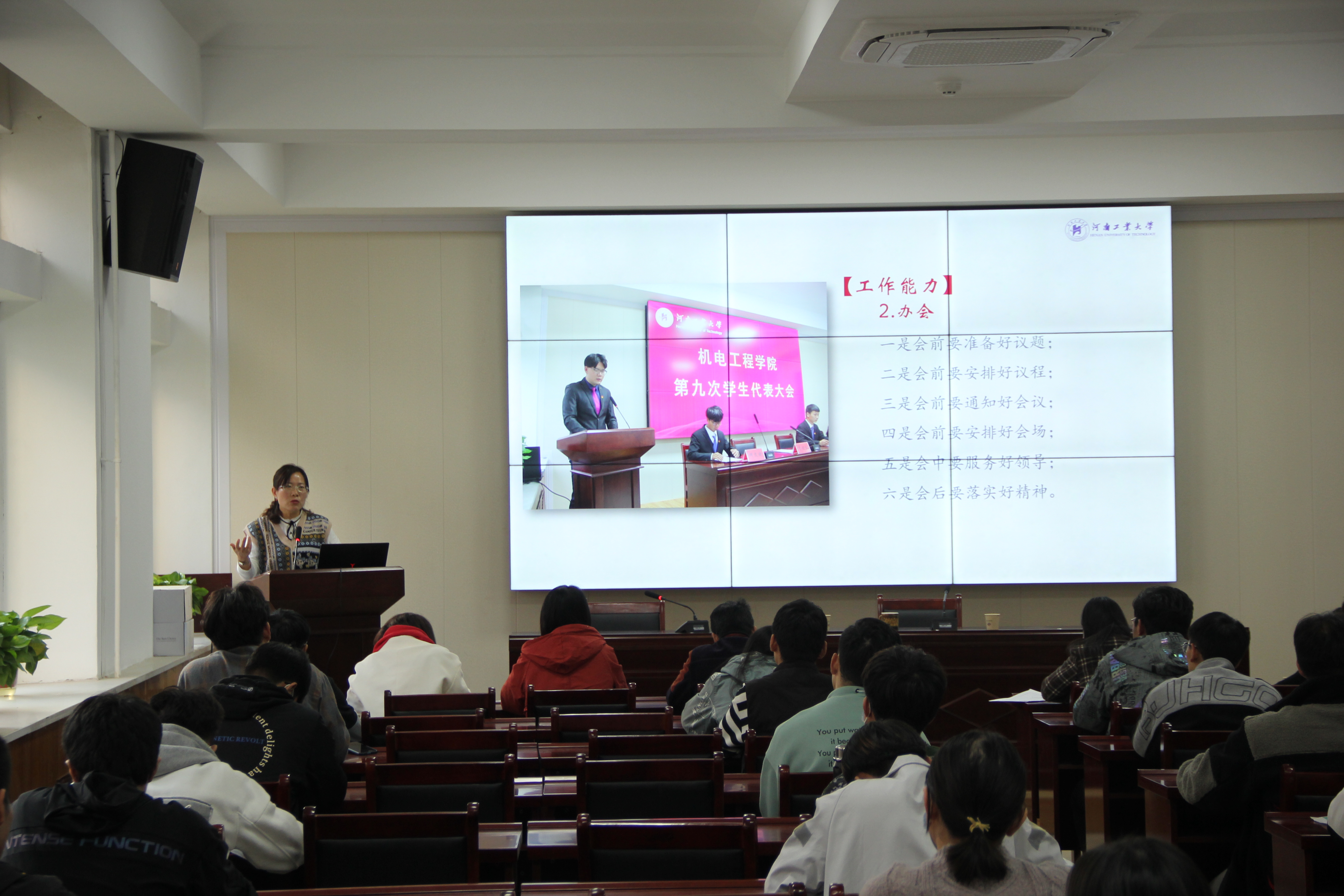 张小彩宣布“青马工程”培训班开班,并以《勇挑使命,争做先锋,如何做一名优秀的学生干部》为题,从四个方面对学生干部进行培训:一是学生干部的作用。学生干部要准确定位自己的身份、正确理解自己的职责、清晰认识学生干部的内涵,在学院工作、协助老师、服务学生等方面发挥学生干部的重要作用。二是学生干部的责任。她指出学生干部要以高度的责任心和出色的执行力,在学院的各项工作中真正做到扛旗子、想点子、扑身子、喊号子、争位子和创牌子,在工作实践中不断提升自身的综合素质。三是对学生干部的要求。她强调学生干部务必要坚持加强学习,不断提高自身能力和素养。要坚持甘于奉献,不断提升服务水平。要坚持勇于创新,充分发挥引领示范作用。四是如何做一名优秀的学生干部。结合如何策划活动、准备会议和搞好服务等学生会具体工作,对学生干部开展工作过程的议程设计、公文写作等必备技能进行了培训和指导,并勉励同学们在总结和积累的过程中不断提高自身的综合能力,早日成为一名优秀的学生干部。