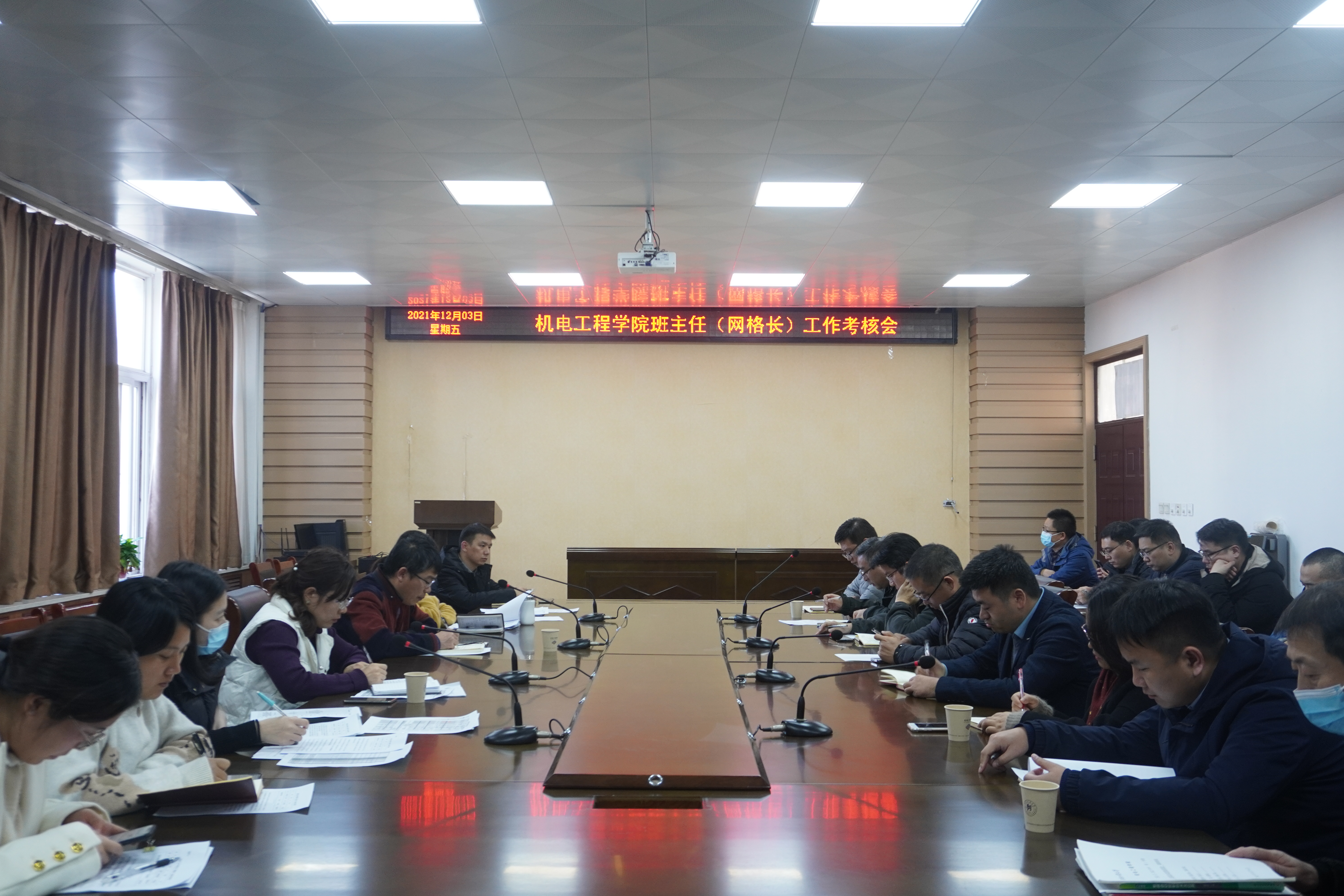 在7244会议室分场次召开各年级班主任工作考核会,院党委副书记张小彩、全体辅导员和各班班主任参加了此次考核交流会,会议由学工办副主任刘伟杰老师主持。