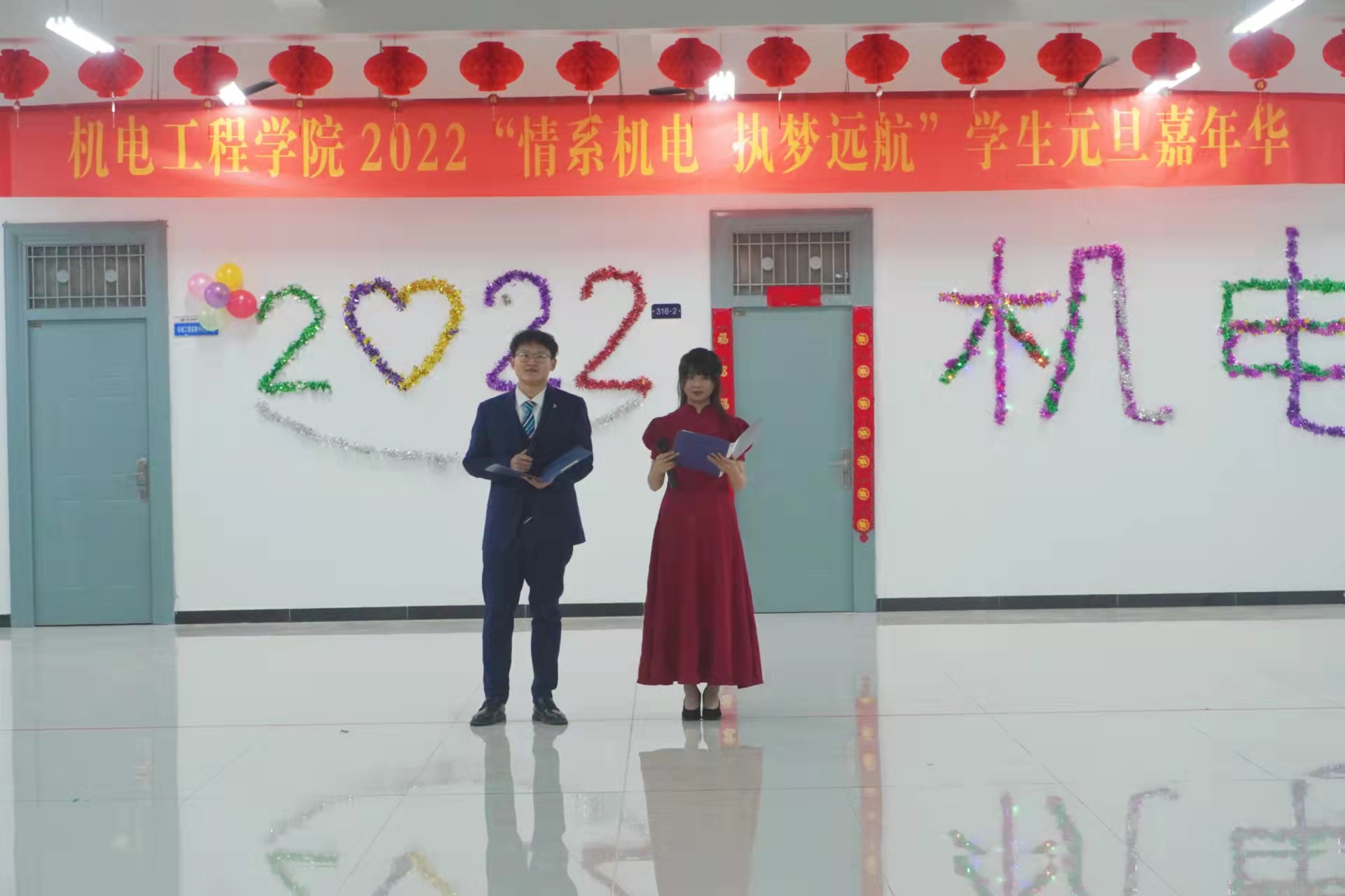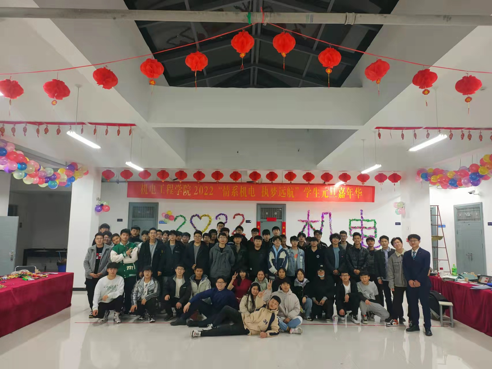 在基础实验实训中心机电实验三楼大厅,举办了第二届 “情系机电,执梦远航”学生元旦嘉年华活动,全体学生会工作人员参加了此次活动。