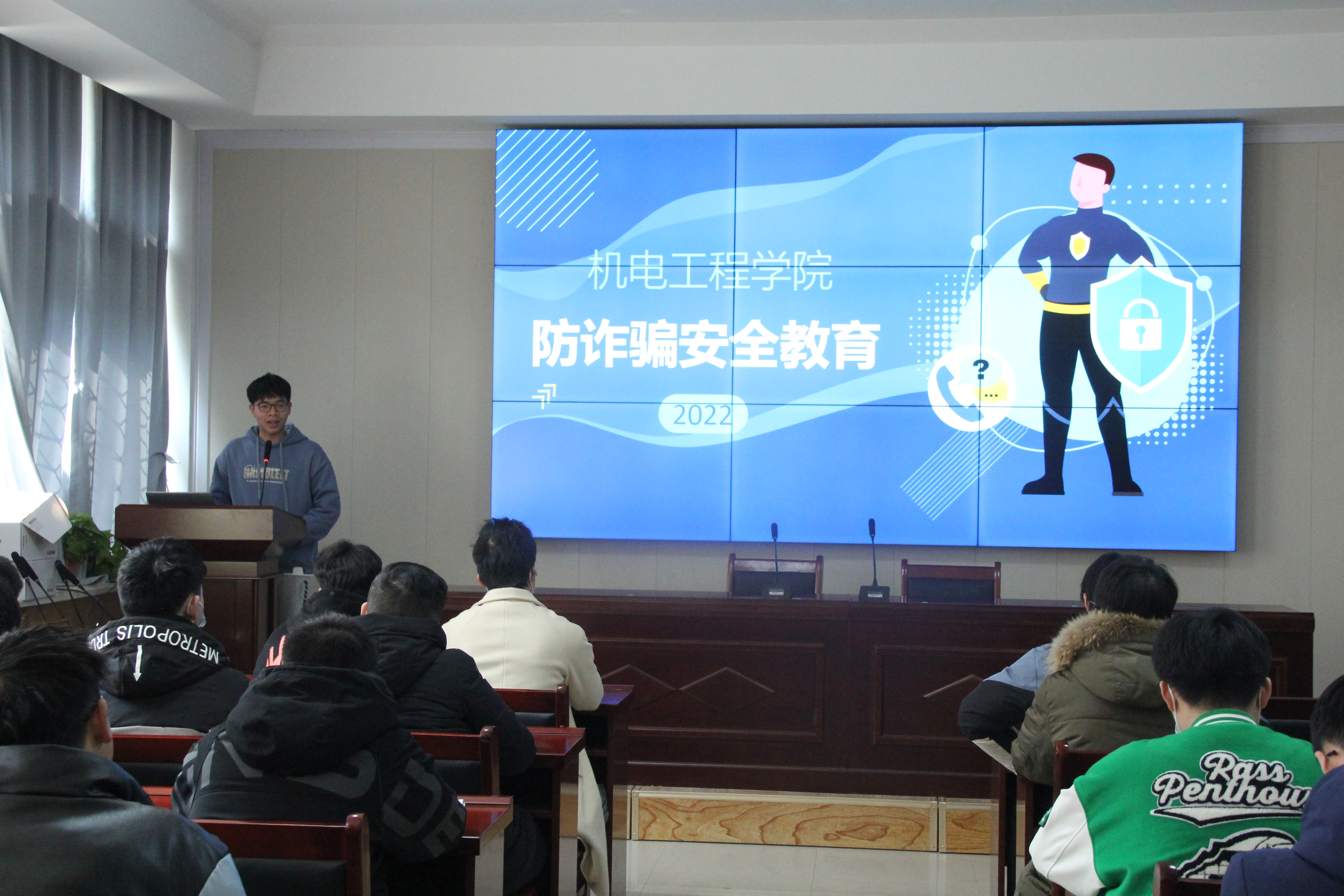 在7224会议室开展防范电信网络诈骗宣传教育活动。辅导员冯晨晨、辅导员鲁鹏、学院各年级班委及学生代表参加了此次安全教育活动。