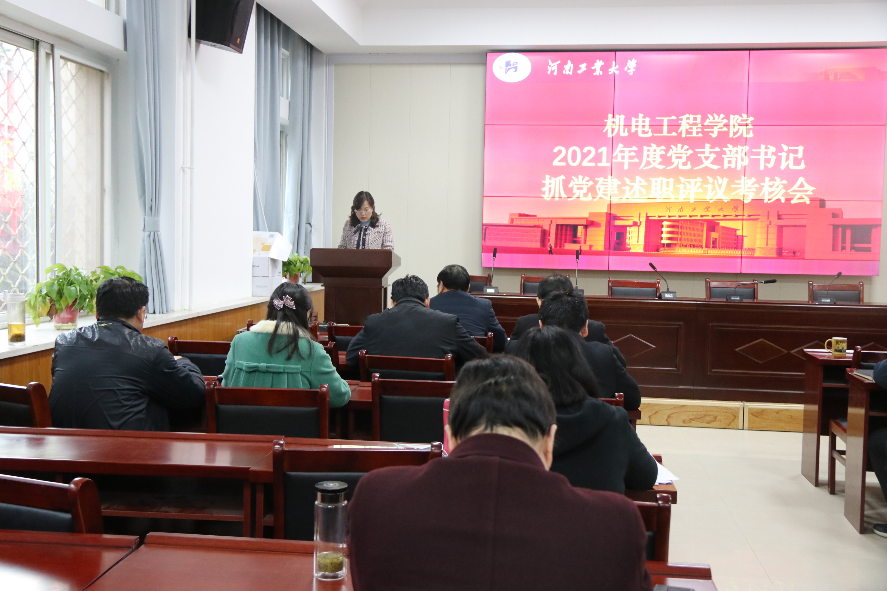 党委在7224会议室召开2021年度党支部书记抓党建述职工作评议会。学院党委书记谭长福、党委副书记张小彩、全体教工党支部书记以及师生代表参加了本次会议,会议由张小彩主持。