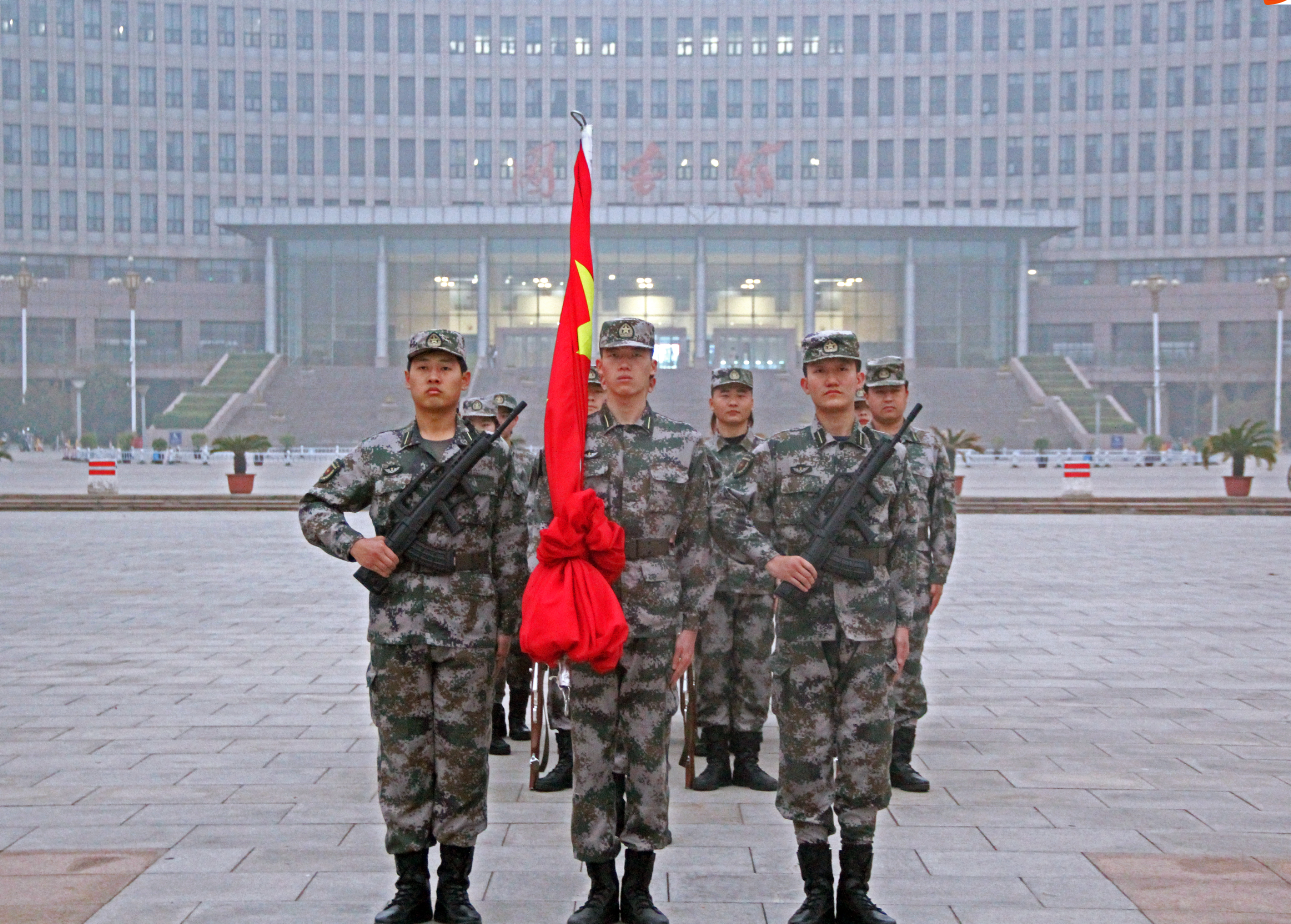 升国旗仪式在7:00正式开始,预备役的旗手们迎着朝阳,以饱满的热情,庄严的护卫五星红旗。当雄壮有力的《义勇军进行曲》响起的时候,全体学生行注目礼,在庄严肃穆的气氛中进行了整个仪式。
