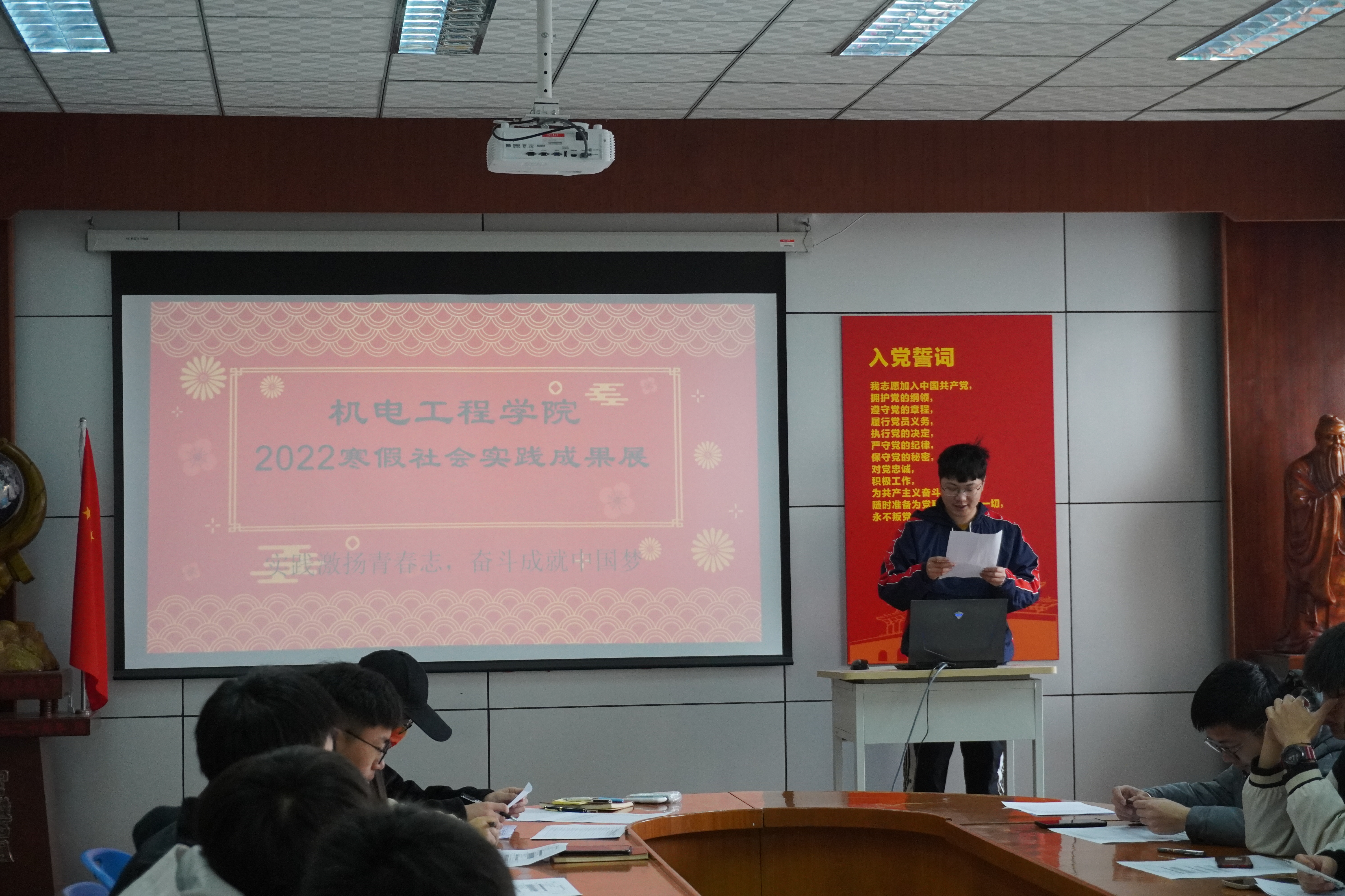 本次汇报总结了2022年寒假社会实践活动的开展情况,积累了开展社会实践活动的宝贵经验,同时展现了机电学子的精神风貌,凸显了新时代青年学子的担当和献身精神。