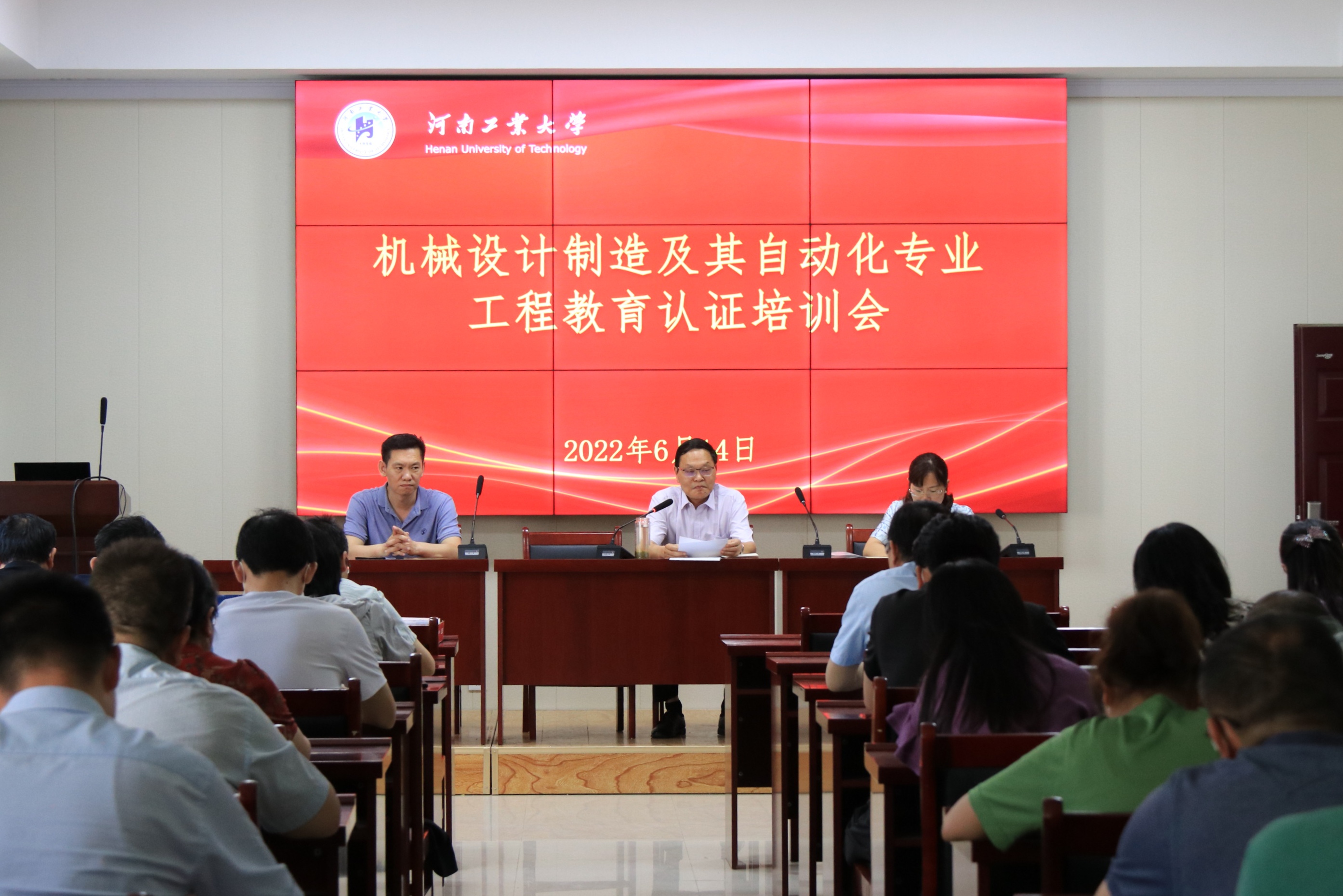 召开机械设计制造及其自动化专业工程教育认证培训会。领导班子成员和全体教职工参加了会议。会议由教学院长曹毅主持。