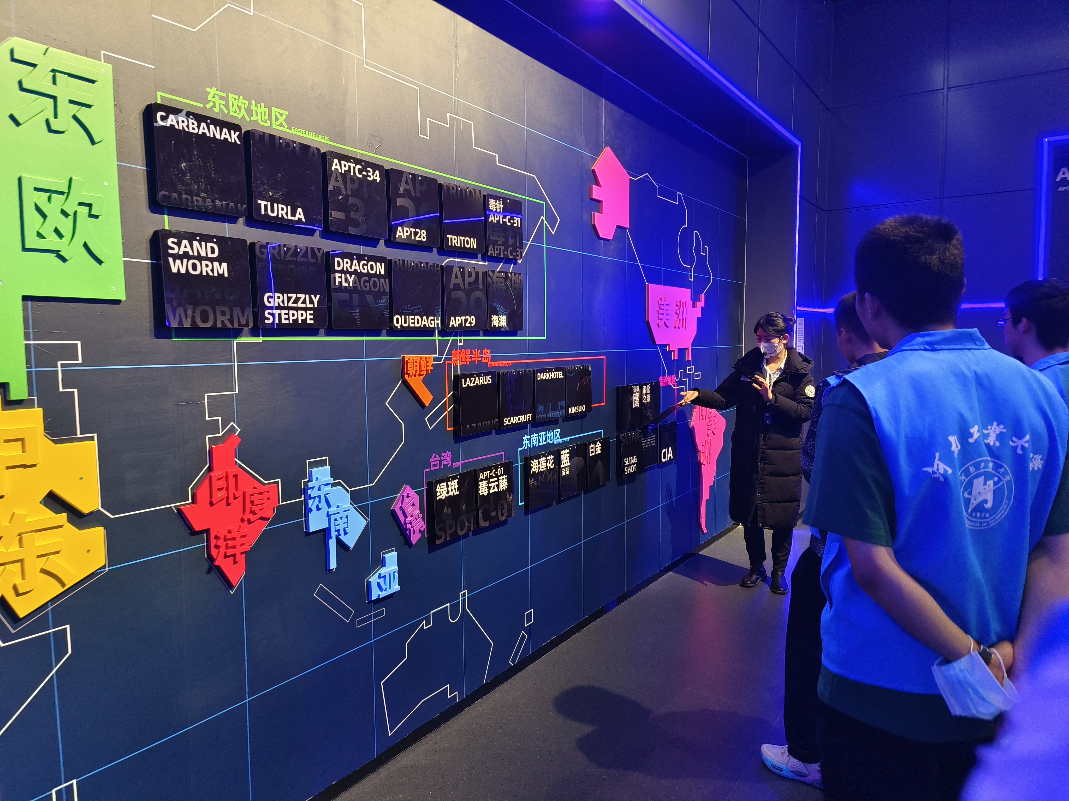 郑州市网络安全科技馆设置个人安全、政企安全、社会安全、综合竞技四个主展区,共200余个展项和1700多件展品。在讲解员的带领下,同学们通过听讲解、互动体验、实物演示等方式,了解了恶意手机充电桩、NFC隐私泄露、网络新型诈骗、智能家居安全隐患等生活中常见的网络安全问题,深入了解网络密码与安全、网络攻击和防御、网络浏览器的技术与发展等网络知识,学到了常用的网络安全技术和抵御安全风险技巧。