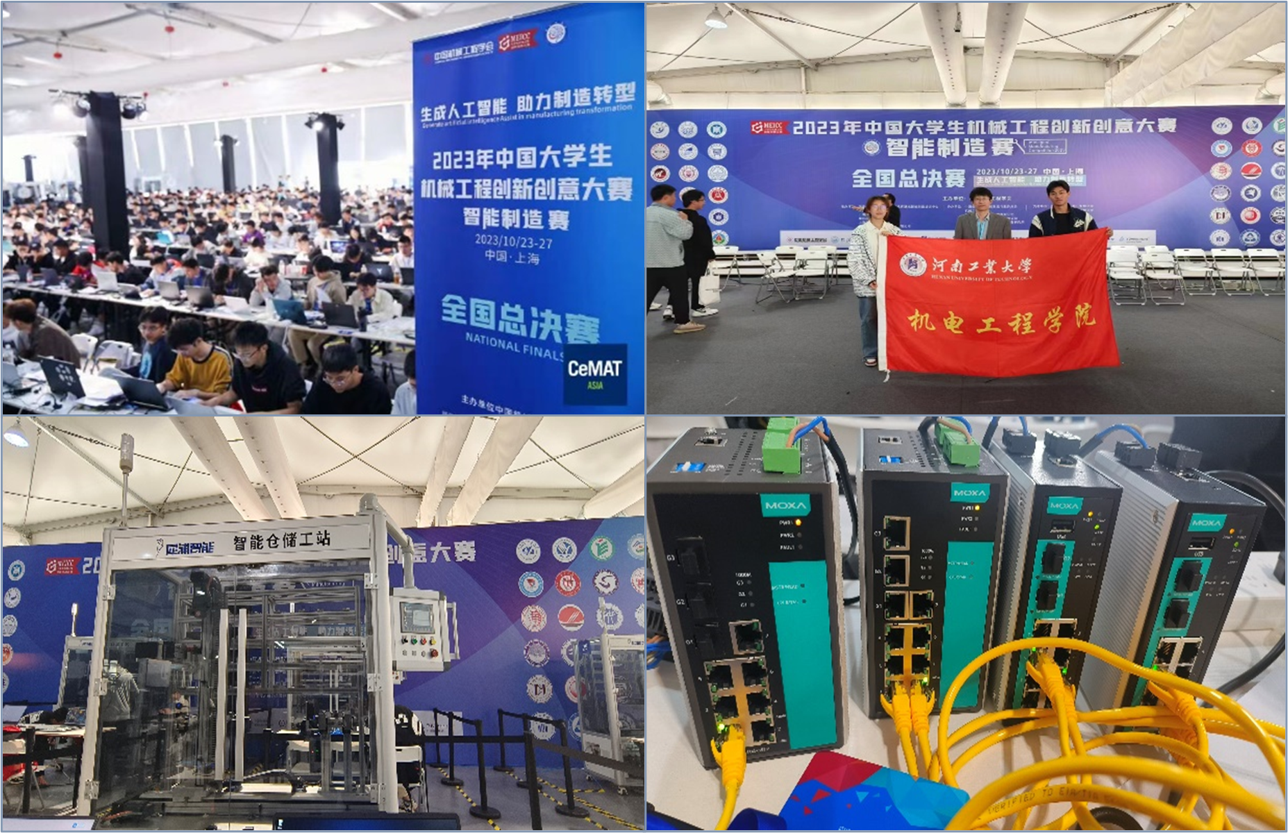 决赛本科组共考察四个赛项,分别是工业网络安全与组网、数字孪生与仿真、生产系统集成与调试、生产系统分析与优化四个赛项。其中工业网络安全与组网赛项通过让选手使用真实的工业交换机和路由器完成相关配置考察了选手对网络通讯原理、以太网组网与配置等原理的实际运用能力。数字孪生与仿真和生产系统集成与调试赛项则利用真实的智能仓储工站考察参赛选手对plc编程、虚实联动和运动控制等知识的实际操作水平。生产系统分析与优化赛项通过选手现场编程考察选手对图像处理基础算法、高级语言编程opencv以及机器学习能力的运用。