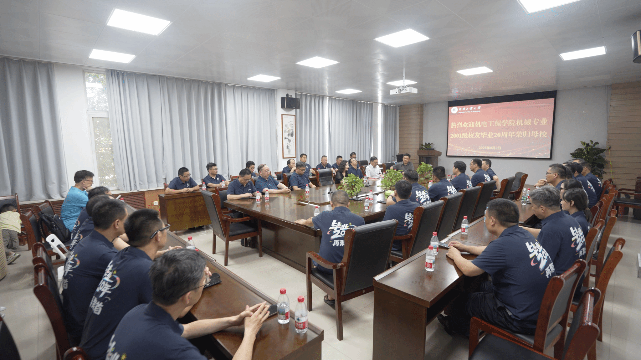 2001级机械设计制造及其自动化专业30余位校友重返母校,共庆毕业二十周年,共叙同窗情、师生情。学校党委办公室主任、校长办公室主任、校友总会会长刘红军,院领导魏涛、吴兰、朱红瑜及教师代表在惟明楼7244会议室与校友进行了座谈交流。