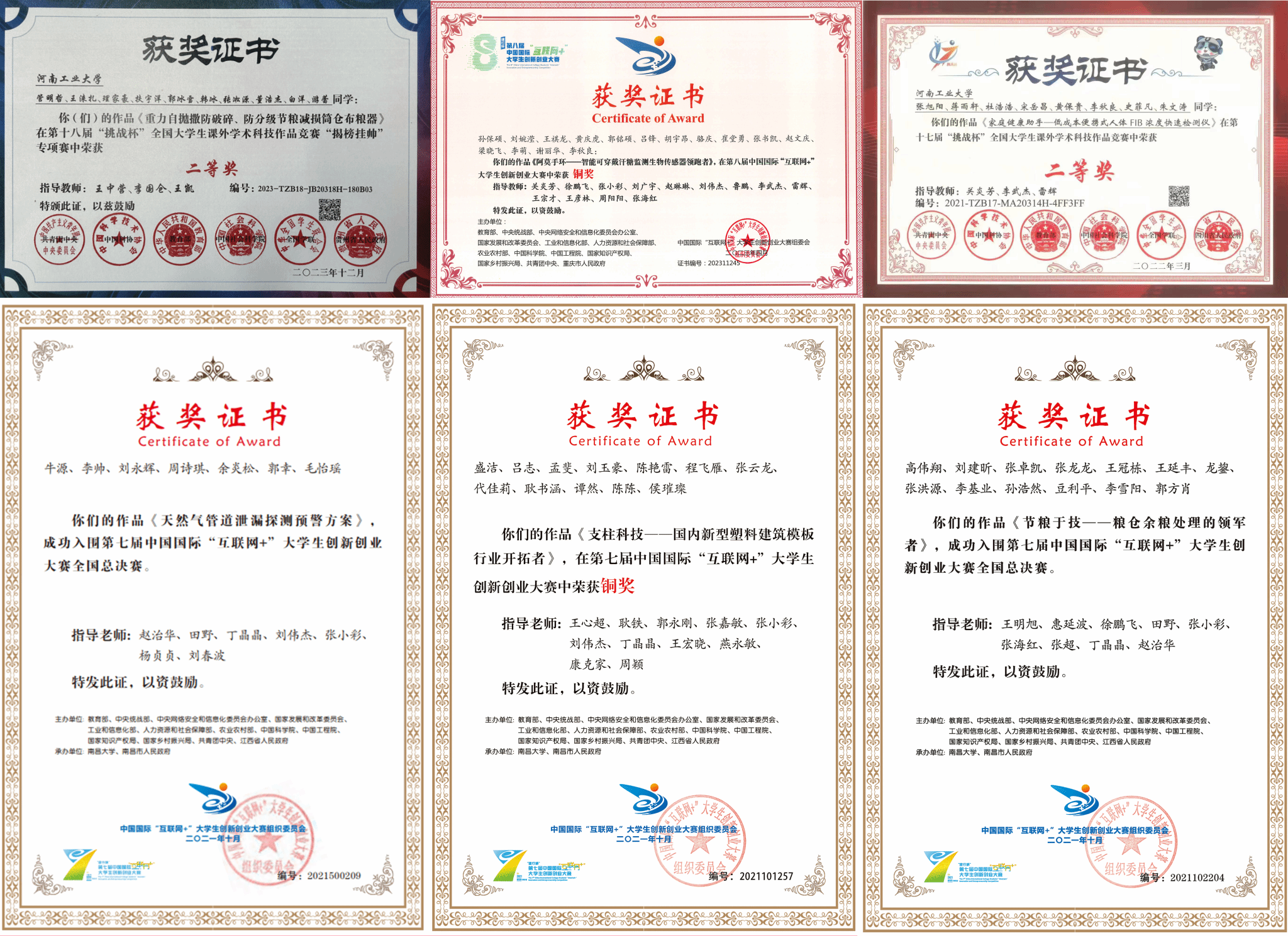 “挑战杯”、“互联网+”综合类赛事国赛获奖