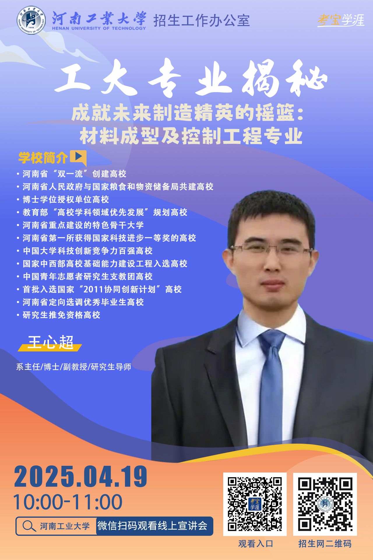 材料成型及控制工程专业源于1956年我校成立的机械制造专业,1988年开设模具方向,2000年被评为国家示范性专业,2004年开始本科专业开始招生,2020年获批河南省一流本科专业建设点。专业学制四年,具有工学学士学位授予权,现为本科一批招生。本专业2006年开始硕士研究生教育,2012年获批材料加工工程二级学科硕士点,2018年获批机械工程一级学科博士点,具备完善的本-硕-博三级人才培养体系。